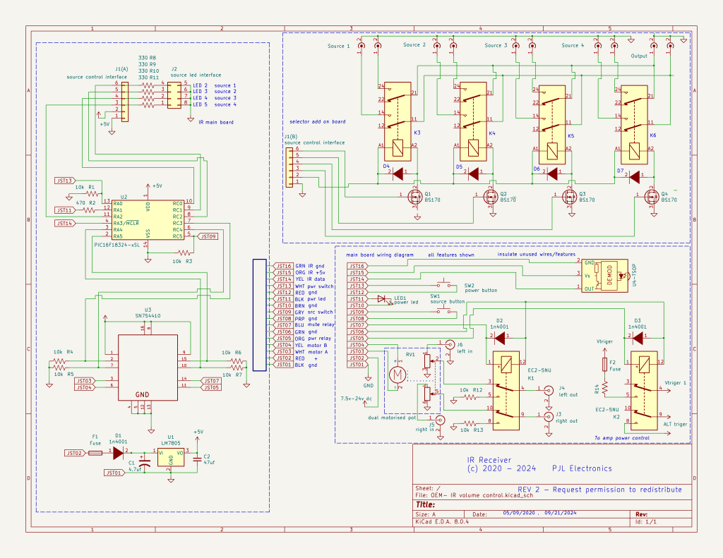Easily adds stepped IR volume control to any audio project.